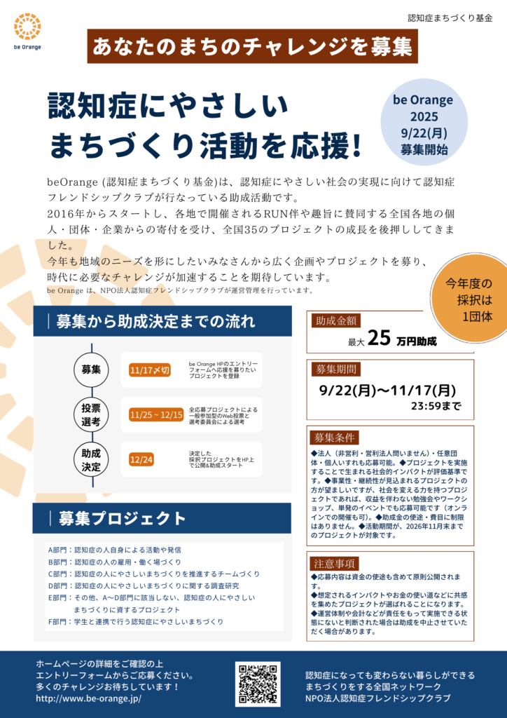 be Orange(認知症まちづくり基金)2025 プロジェクト募集開始のお知らせ